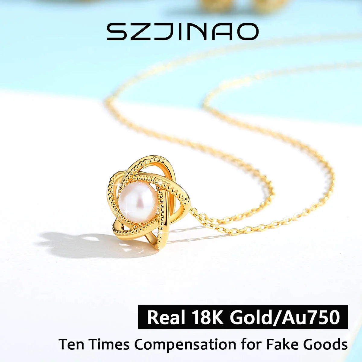 Genuine 18K Gold Lucky Star Pendant Necklace Natural Pearl Unique Craftsmanship for Women Anniversary Party Gift Trendy Jewely