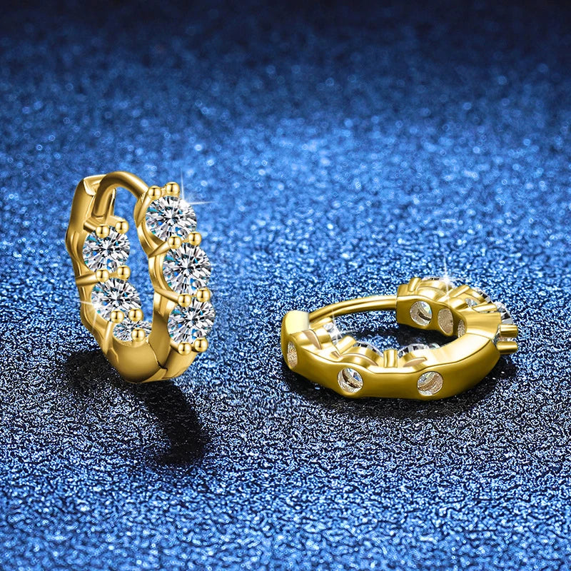 NeeTim 3mm Full Moissanite Hoop Earrings for Women Lab Diamond 925 Sterling Silver with Yellow Gold Plated Wedding Earring
