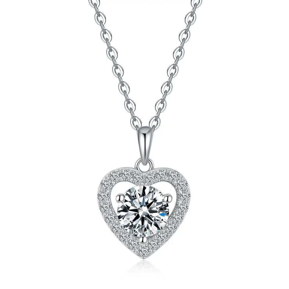 Romantic Love Shape 1CT Moissanite Necklace Round Cut Pendant for Women 925 Sterling Silver Cute Jewelry Valentine's Day Gift
